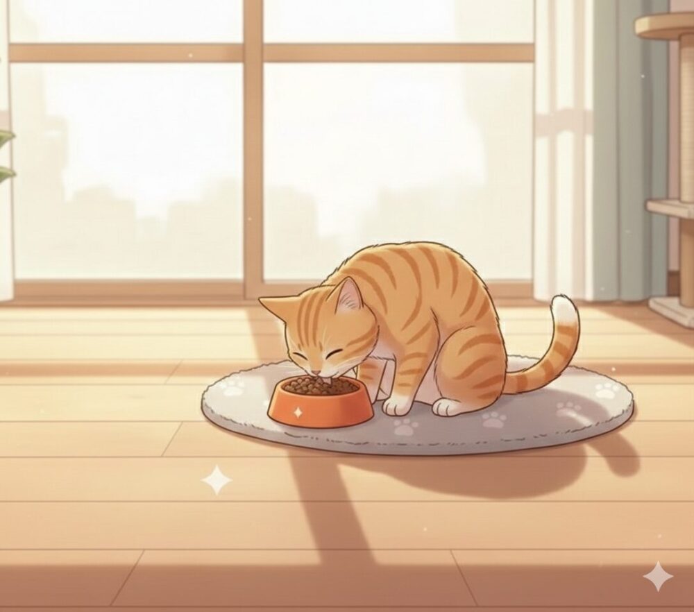 分割給餌や早食い防止皿を試してみるのもええで。